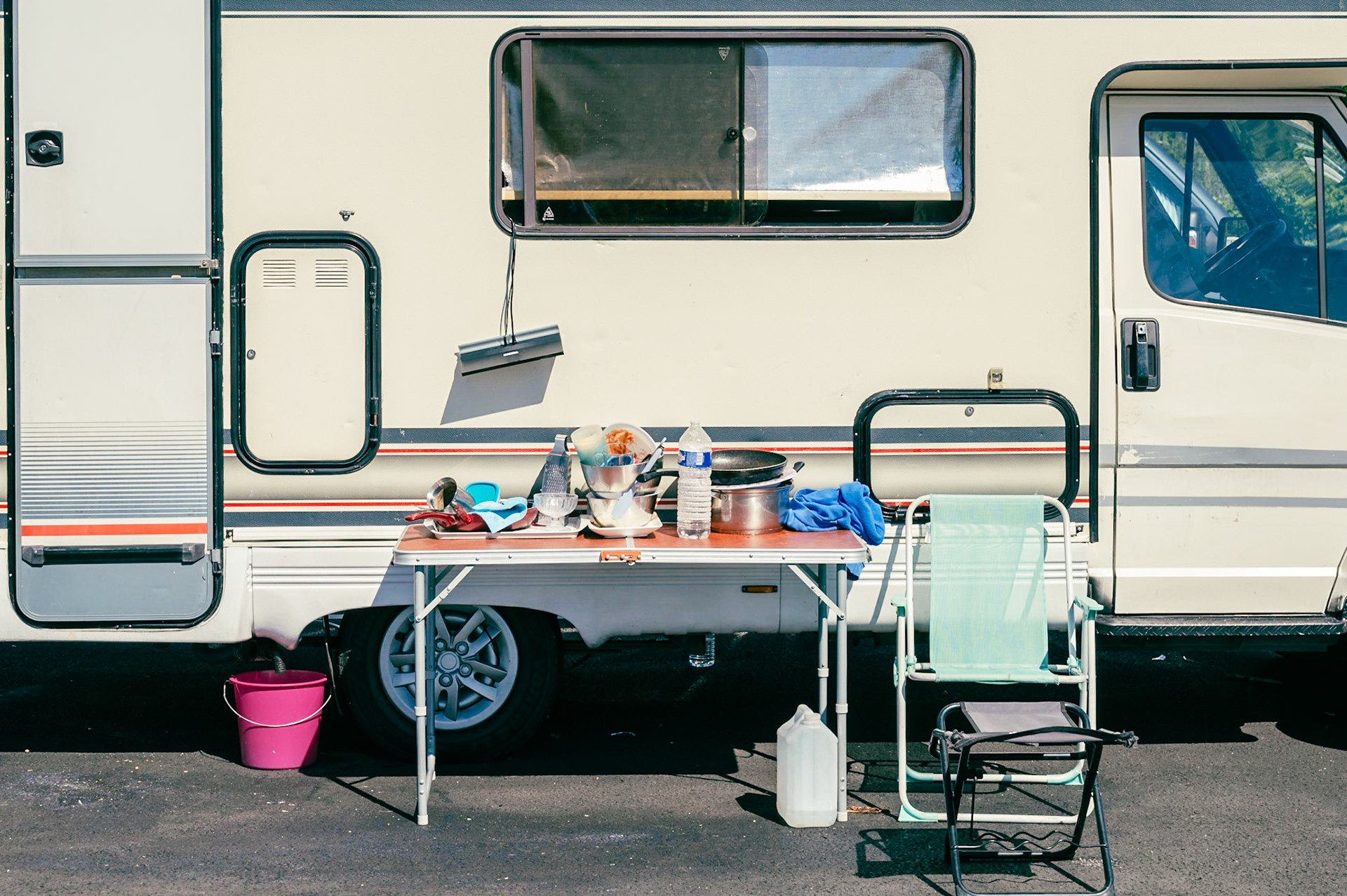 Arrêt sur image, le réveil du camping - cariste à Arras.